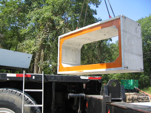 Applying the sealant tacky sealant before setting it in the hole saves time and makes the box culvert easier to work with. Photo courtesy of Barger Precast.